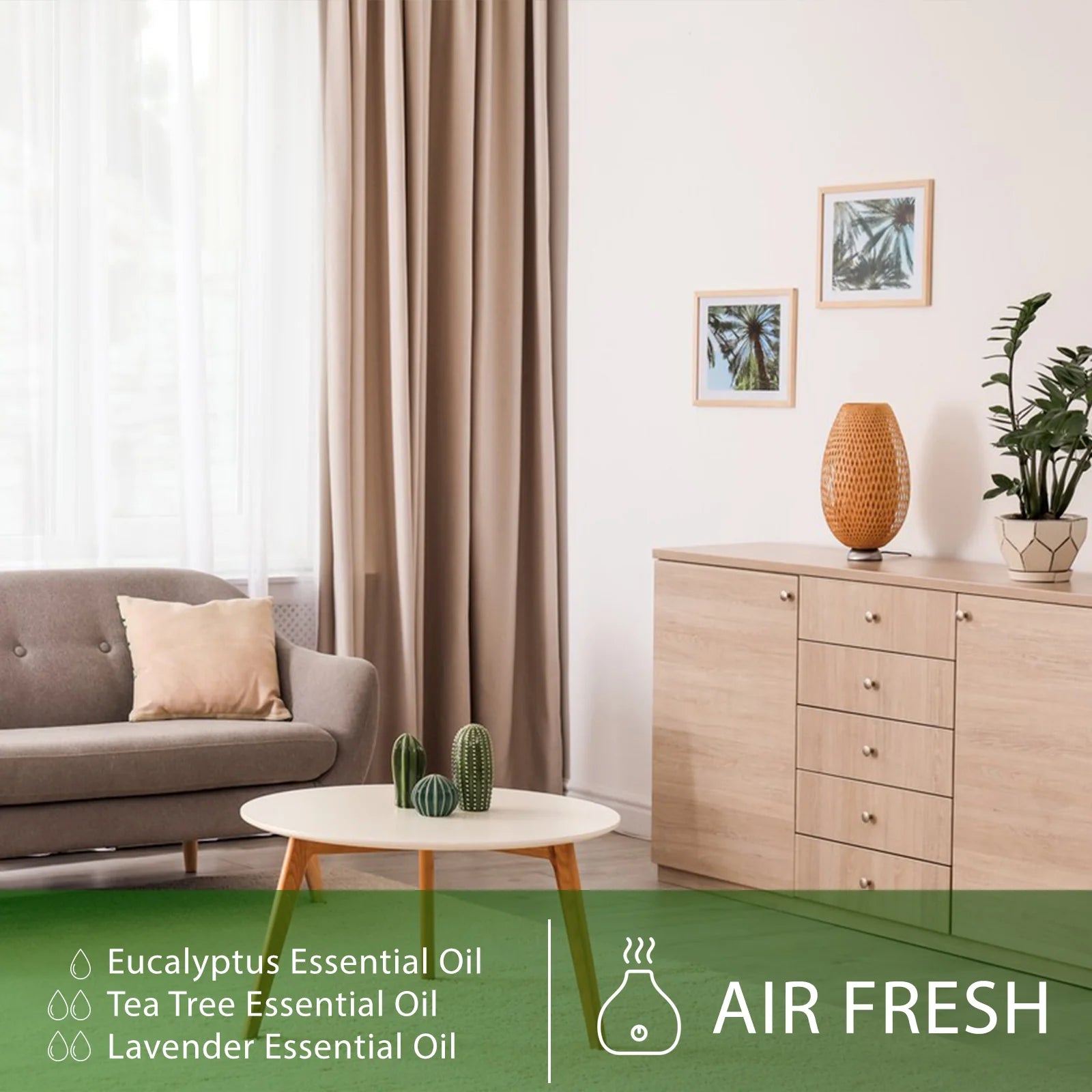 A csomag tartalma 6 x 10 ml-es illóolaj: Levendula – nyugtató és stresszoldó, Eukaliptusz – frissítő és légúttisztító, Borsmenta – élénkítő és hűsítő, Édes narancs – hangulatjavító és frissítő, Teafa – antibakteriális és tisztító hatású, Citromfű – élénkítő és rovarriasztó