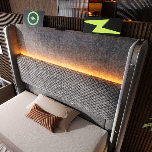 A fejtámlába épített USB- és Type-C csatlakozók lehetővé teszik telefonok, tabletek és egyéb eszközök kényelmes töltését közvetlenül az ágyból.
