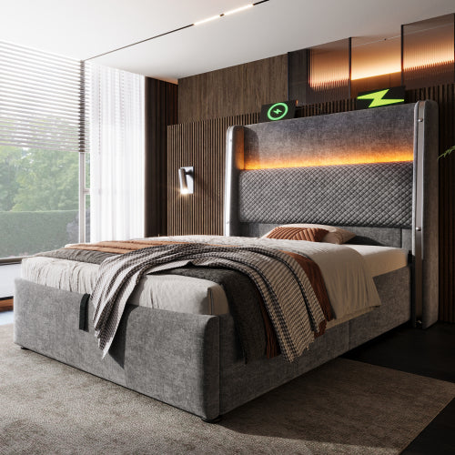 Hidrax modern hidraulikus ágy – magas fejtámlával, LED-világítással, USB/Type-C töltőkkel és tágas tárolóval | Sincere