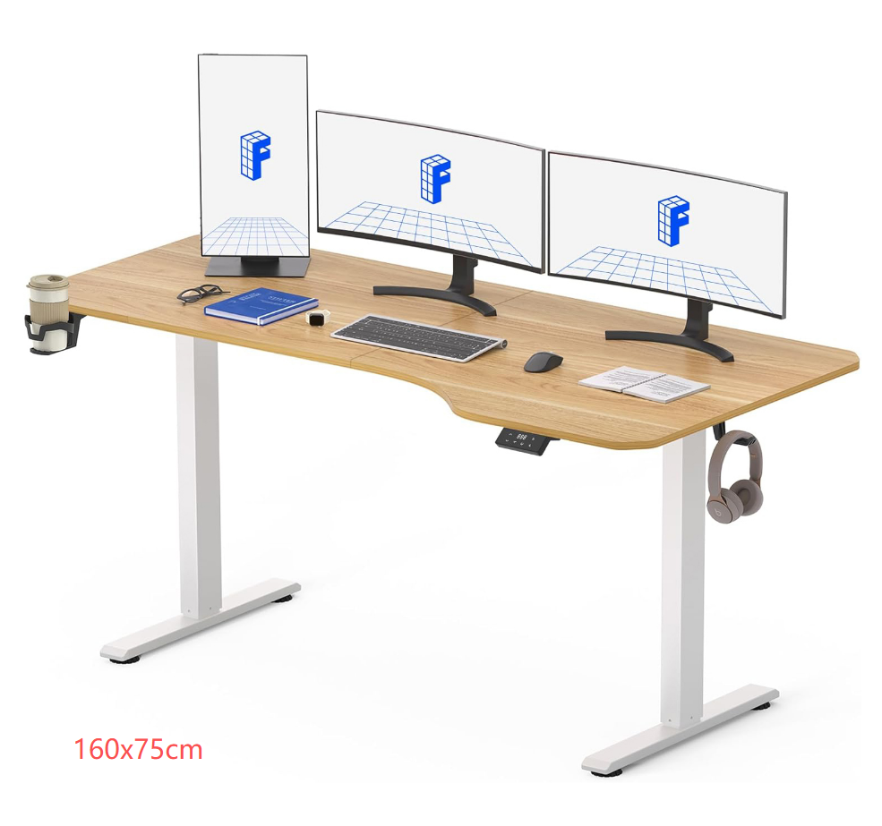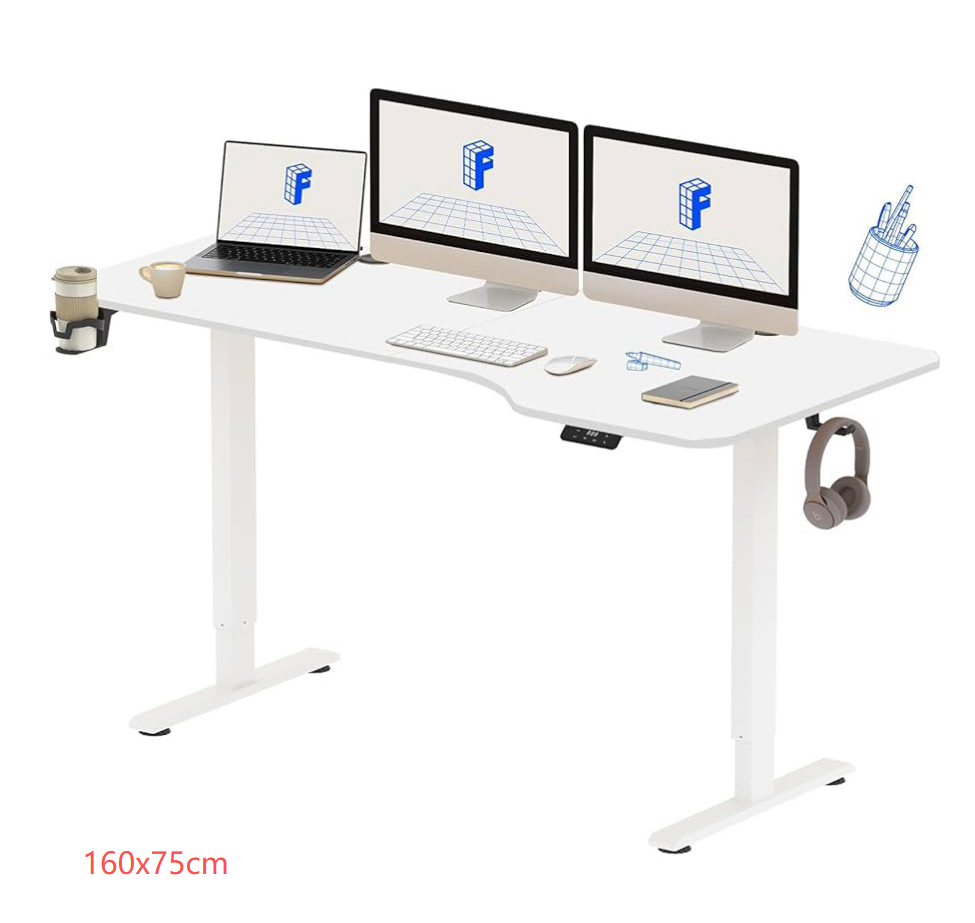 Elektromos magasságállítható íróasztal memóriafunkciós vezérléssel, pohár- és fejhallgatótartóval, két méretben és három színben
